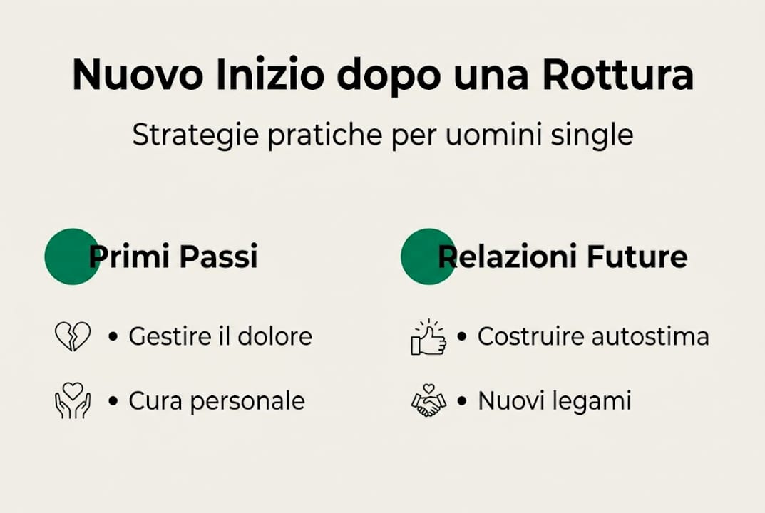 Una rottura può far sentire il terreno mancare sotto i piedi. Migliaia di uomini italiani si ritrovano ogni anno ad affrontare il vuoto lasciato da una relazione finita, spesso senza sapere da dove cominciare. I divorzi grigi triplicati dal 2013 al 2023 tra gli over 50 mostrano quanto questo fenomeno sia reale e diffuso. Ma c'è una buona notizia: ricominciare non solo è possibile, è anche un'opportunità concreta per diventare una versione più autentica e stabile di te stesso. In questo articolo troverai un percorso chiaro, con strumenti pratici e supporto emotivo pensati su misura per te.