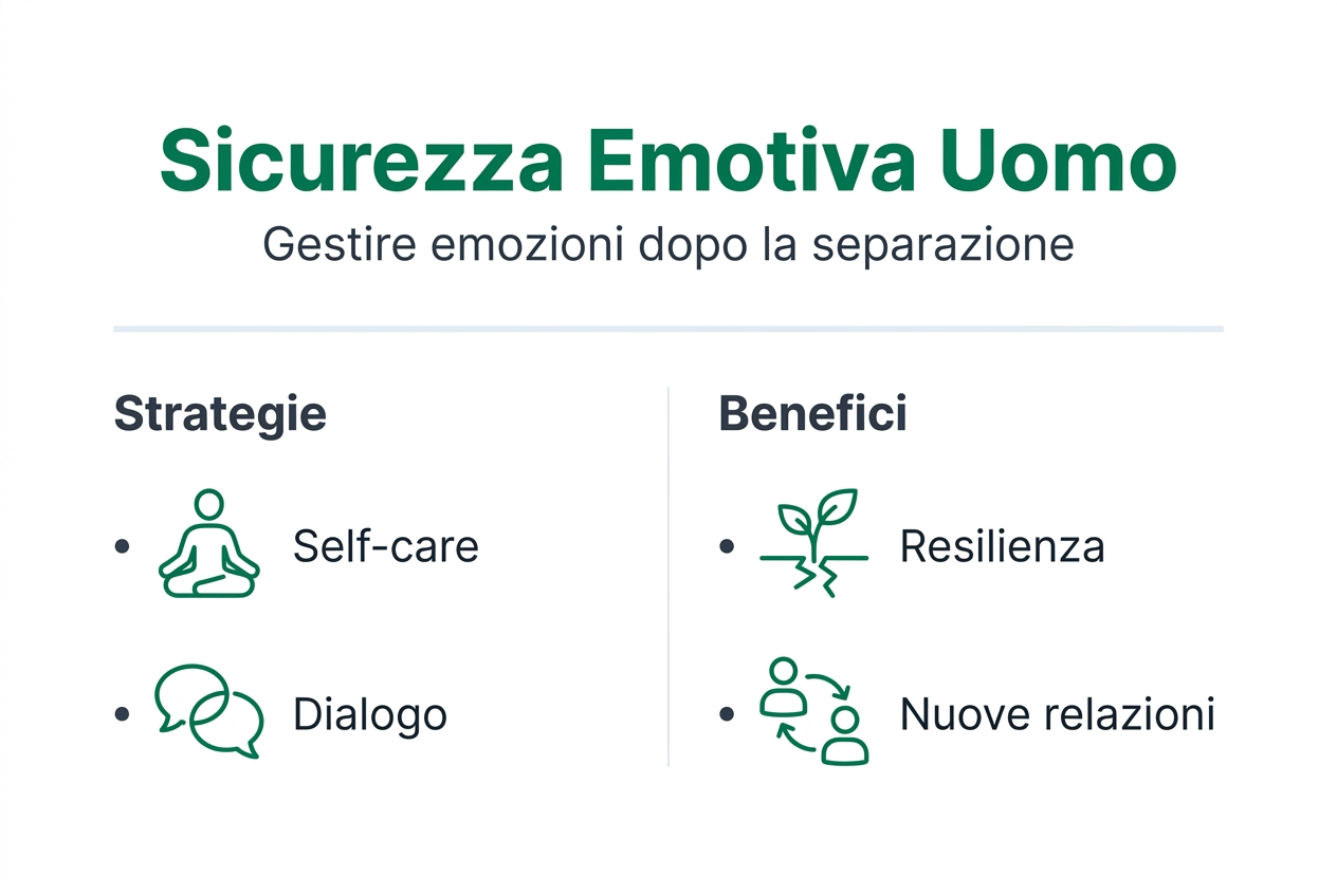 Cerca supporto emotivo attraverso terapia individuale, gruppi di sostegno per padri separati o amicizie autentiche. L'isolamento peggiora tutto. La connessione umana guarisce. Non devi attraversare questo percorso da solo. Sviluppare autostima solida durante e dopo la separazione protegge da decisioni impulsive e pattern relazionali distruttivi.