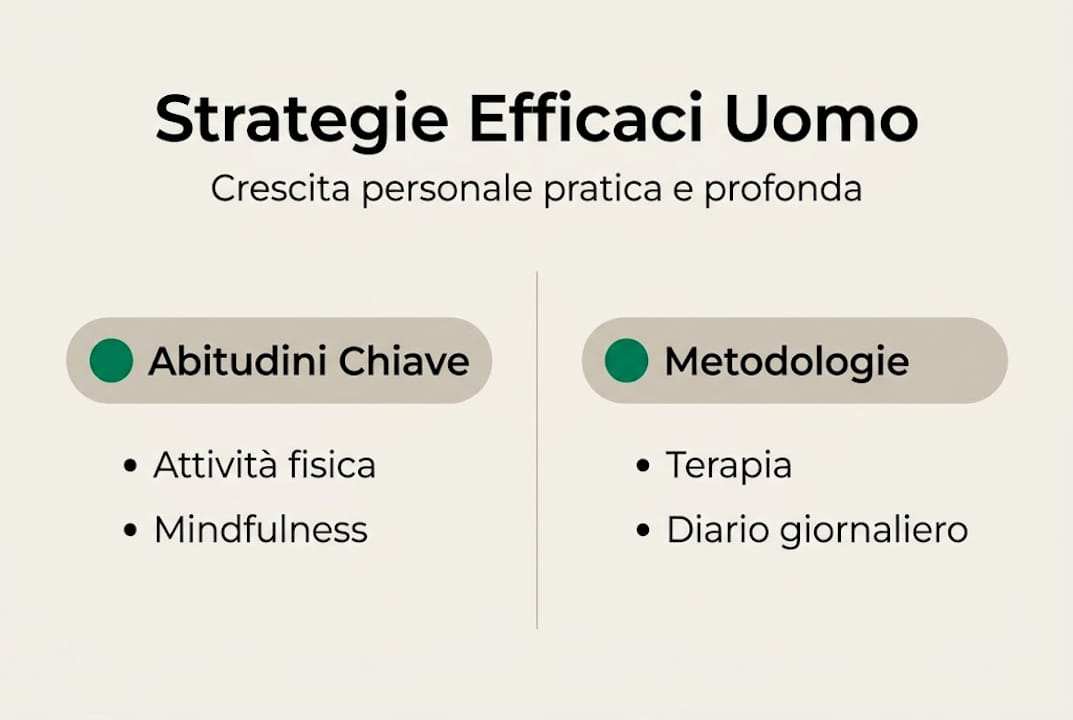 Per chi vuole un percorso più strutturato, la sezione sulla trasformazione personale uomo e la guida su come sviluppare autostima relazionale offrono strumenti pensati specificamente per uomini che vogliono crescere in modo etico e profondo.